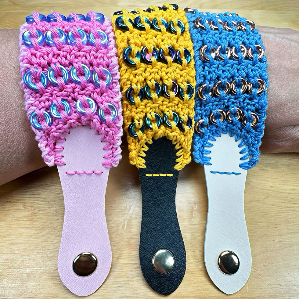My design journey for the Halo Pop Bracelet began with a beautiful collection of donut and spacer beads I had on hand. I wanted to create something that would truly let these beads shine, using them as a striking focal point for the bracelet. I also wanted the design to complement and showcase the natural beauty of both the yarn and the beads.